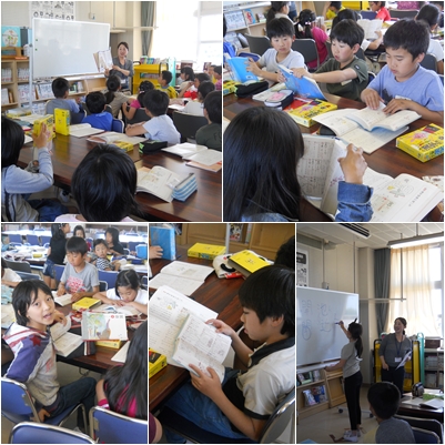 今週は図書館司書の稲山先生から漢字事典の引き方を教えてもらいました。漢字の成り立ちには怖い話があるということを初めに知って、みんなびっくりしていました。