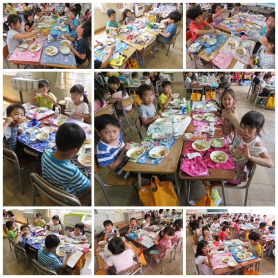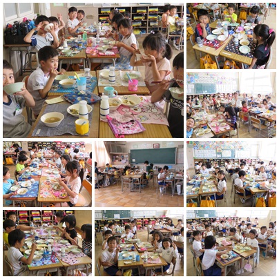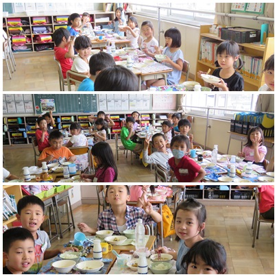 給食の時間に1年生、6・7・8組、2年生の教室をのぞいてみました。