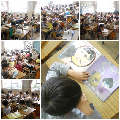今日の朝の様子です。8時までは静かな教室も、10分を過ぎると児童でいっぱいになります。連絡帳を書いたり、野菜に水をやったりと、登校したそばからやることが多い児童ですが、それが終わると外へ行って遊んだり、教室で友だちと話したりして楽しんでいます。25分のチャイムが鳴ると、ほとんど声が聞こえなくなります。静かに読書ができるようになった証拠ですね。この調子で、切り替えのできる子たちにしていきたいと思います。