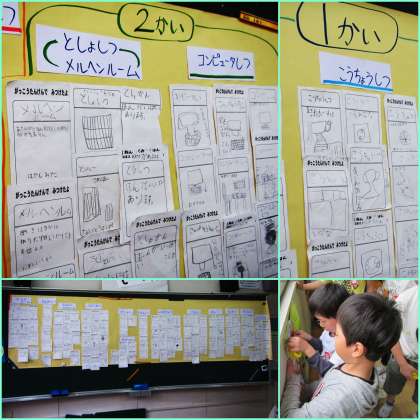 「フロア(階層)ごとに分けて貼ろう」というのは子どもたちのアイデアです。
