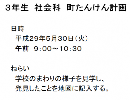 来週の火曜日に3年生はまち探検を行います。