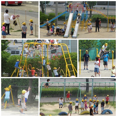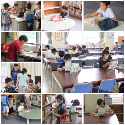 昼放課のメルヘンルーム・図書館、運動場の様子です。