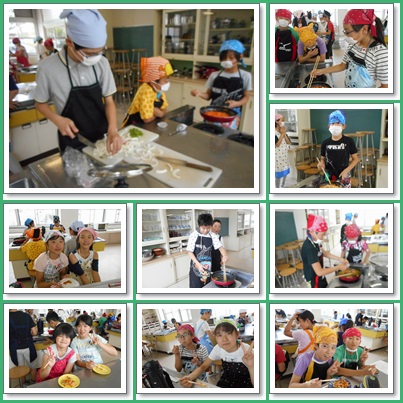 グループによって、野菜の切り方を工夫していました。好みを聞いて、大きめに切って野菜の甘さを楽しんだり、細かく切って、食べやすくしたりしていました。教科書通りでなく、自分たちにあわせて調理することができました。おいしく、残さず食べることができましたね。