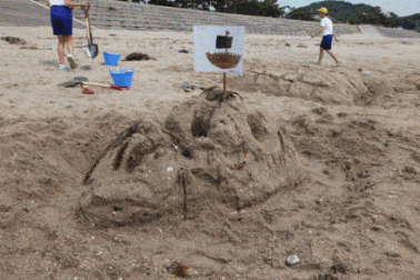 今回は、砂の造形の作品、成績発表、帰路 です。