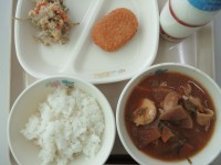 天ぷらうどん、キスの天ぷら、ごま和え、白玉うどん、牛乳