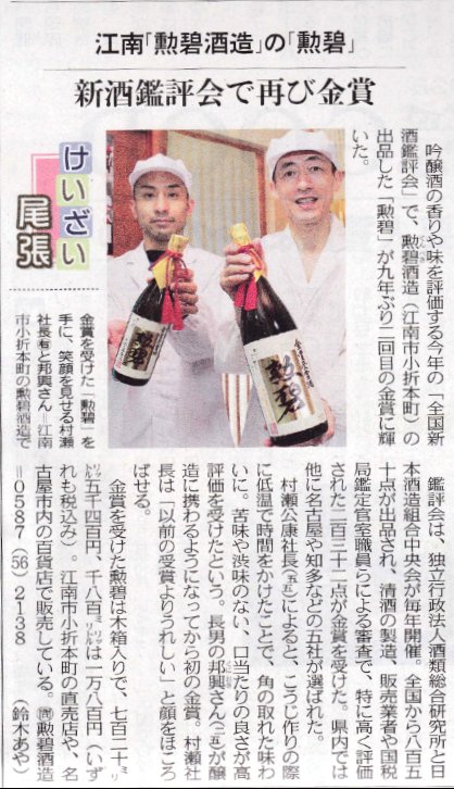 今朝の中日新聞に、「勲碧」が取り上げられていました。