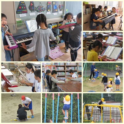 室内で、鍵盤ハーモニカや電子オルガンを楽しんでいる子がたくさんいました。