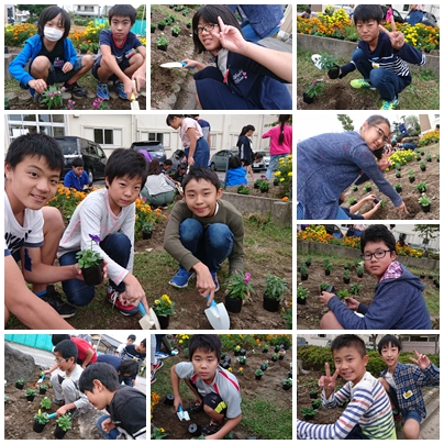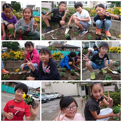 後期の栽培委員会で,花広場に花を植えました。子どもたちはスコップや手を使い,花の苗を一つずつ丁寧に植えていきました。子どもたちは一生懸命がんばってくれました。それぞれ担当の場所や曜日を決めたので,明日からさっそく花の水やりをよろしくお願いします。布袋小の花壇がいつも花がいっぱい咲いていますように☆