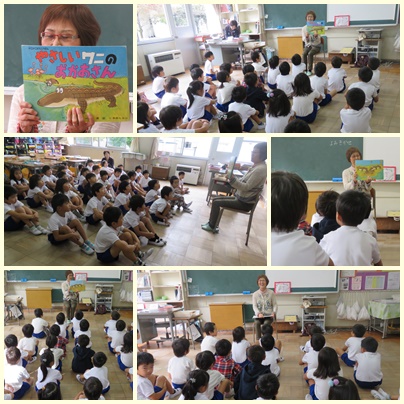 今日は1年1組で紙芝居で行われました。