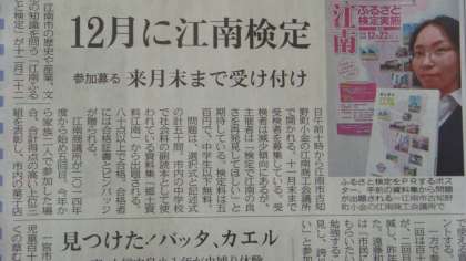 今朝の中日新聞に、「12月に江南検定」の記事が掲載されました。