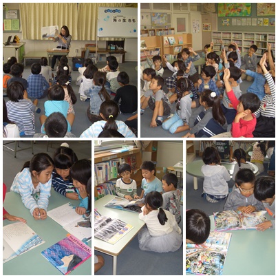 15日(月)に3組と4組が、16日(火)に2組がブックトークを行いました。来週の遠足で名古屋港水族館に行くので、それに関連したお話を稲山先生にしていただきました。本を読んだり、紙芝居を聞いたりなどして、楽しい時間を過ごせました。