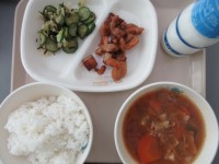 今日の献立は、ごはん・牛乳・チャプチェ・まめもやしのナムル・トッククです。 今日...