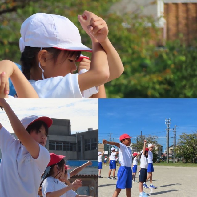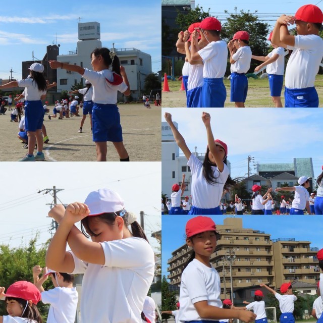 今日は外で初めての3,4年生練習を行いました。隊形や動きの確認をして、自分たちの踊る場所を確認した子どもたちは、音楽が鳴り始めると自然と手や身体を動かしていました。どの子も一生懸命「大きく踊るぞ!」という気持ちで頑張っていました。