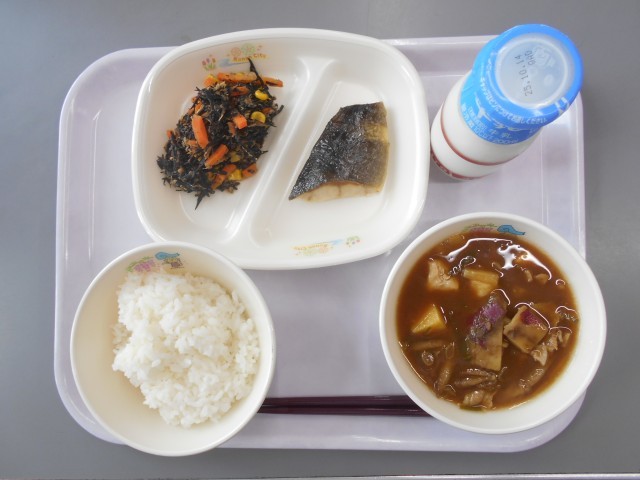 ごはん ぎゅうにゅう ほっけのしおやき ひじきのいために さつまいものぶたじる 621kcal