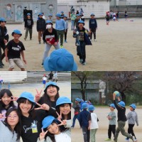 空に重い雲がのしかかるなか、布北っ子の元気なあいさつを聴くと元気になります。