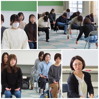 11月12日(水)に、「令和7年度 PTA家庭教育学級」が開催されました。今年度の講座は、「だれでも出来る 椅子ヨガ」です。ヨガインストラクターの柴山美来先生におこしいただき、椅子ヨガを教えていただきました。参加されたみなさんは、目を閉じながら落ち着いた雰囲気の中で、心と体をリフレッシュし、ゆったりとした時間を過ごすことができました。