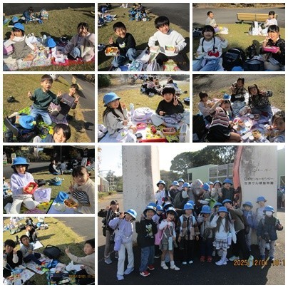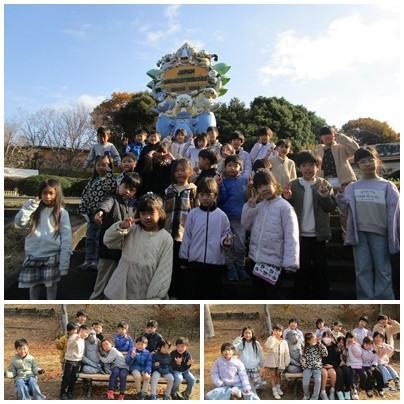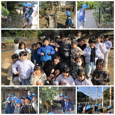 1,2年生で、秋の遠足「モンキーセンター」にいきました。アフリカのさる、ヤクシマざる、テナガザルなど、さまざまなさるを見て回りました。