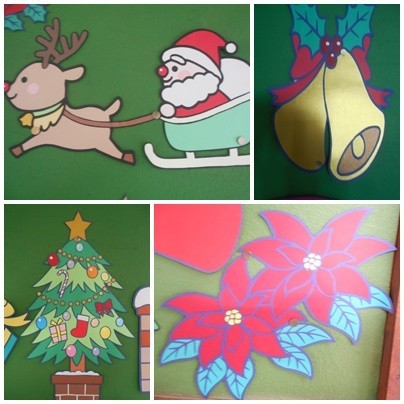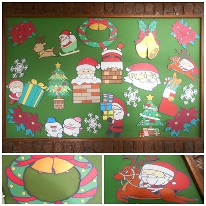 「クリスマス」を切り絵にしていただき、校長室の横の掲示板に貼っていただきました。