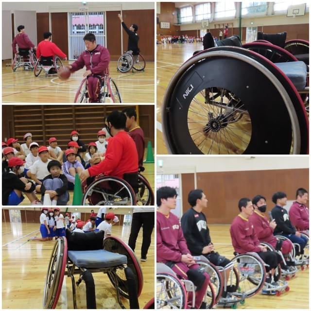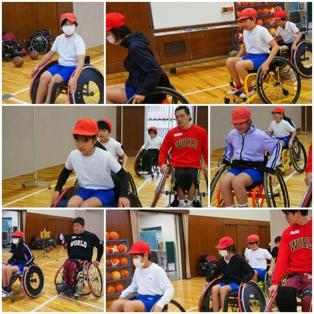 ワールドBBCというチームの選手に来ていただき、車いすバスケの体験教室を行いました。