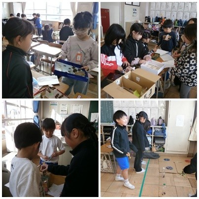 1・2組合同で「秋のおもちゃまつり」を行いました。「どんぐりごまベイブレイド」「オナモミの魚釣りやさん」「秋のどんぐりやはっぱをつかったマラカスやさん」「リースやさん」などなど・・・たくさんのお店が出店されました。こどもたちの発想は素晴らしく、どうしたらお客さんに楽しんでもらえるか、一生懸命に考え、お店の準備をしていました。おもちゃづくりも、お店の準備も、お店の店員さんをするのも、お客さんをするのも、とても楽しかったようです。最近、生活科の授業を楽しみにしている子どもたちの姿がありました。2時間続けてのおもちゃまつりの授業時間でしたが、あっという間の時間で、どの子も笑顔でした。保護者の方には、秋のどんぐりやまつぼっくり、ビーズやボンドなど、たくさんの材料をご準備頂き、ありがとうございました。