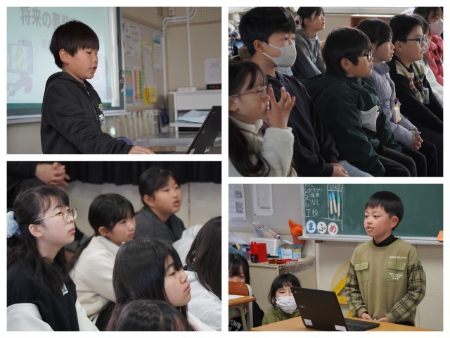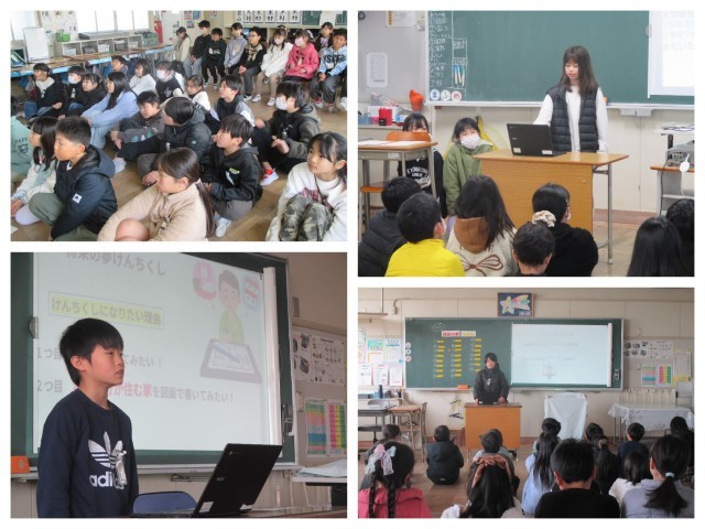 今日は3年生に今まで頑張って文やスライドにまとめてきた将来の夢発表を見てもらいました。見ている人に「伝えたい」という思いで3年生の目を見て大きな声で発表ができた子もいれば、緊張して早くなってしまったり、相手の目が見えなかったりしたなという課題も見つかりました。