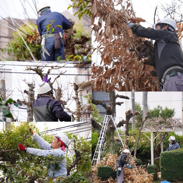 たくさんの造園職人の方にお越しいただき、手入れを行っていただきました。