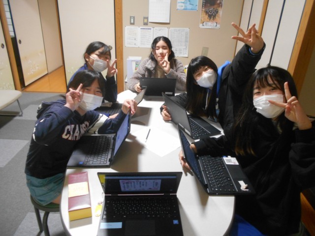 お世話になったみなさんに送る感謝状のデザイン作成グループのみんなです。