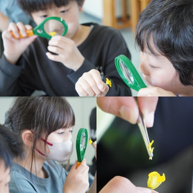 ルーペやピンセットを使い、どのようなつくりになっているかをじっくり観察しました。