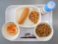 茎わかめは、わかめを加工するときに取り除かれる茎の部分で、こりこりとした食感が特徴です。食物繊維の量がわかめより豊富で、1.7倍多く含まれています。(南部学校給食センター発行「5月分献立表」より)