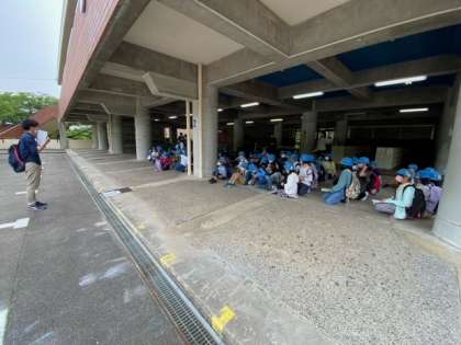 ウォークラリーが始まります。みんな声を掛け合って5分前行動がしっかりできました。みんな元気です。