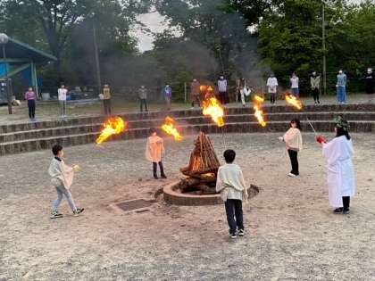 火の神から火の子が、友情の火、協力の火、勇気の火努力の火をもらいました。