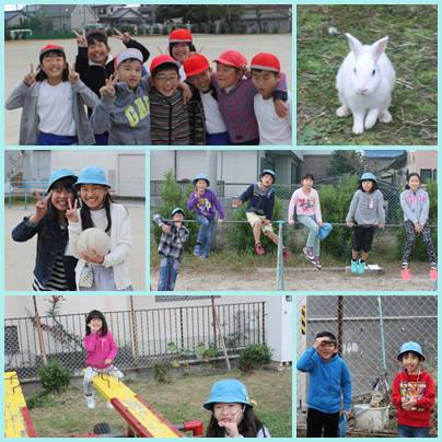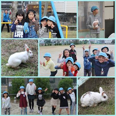 今日の休み時間の様子です。午後から雨が降る予報なので、フリータイムは多くの子ども達が元気よく遊んでいました。飼育小屋では、朝の集会で紹介されたウサギたちが元気に駆け回っていました。