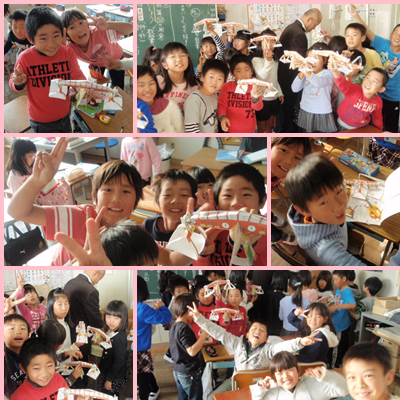 3年生の授業風景です。算数の「重さ」という単元で天秤づくりをしました。思いっきり盛り上がっていますが、授業が終わった直後だからです。授業中はどの子も落ち着いて真剣に授業を受けていました。しっかりけじめがついている3年生です。