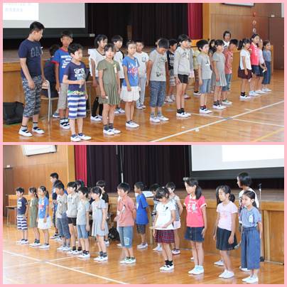 今日は、児童集会で給食委員会と飼育委員会のみなさんが、工夫をこらして発表をしました。