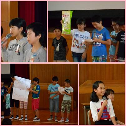 給食委員会の後に、飼育委員会の発表がありました。飼育委員会では、クイズ形式で飼育小屋で飼っているウサギについての問題をだしました。飼育小屋で飼っている3匹のウサギのオスかメスかについてや、ウサギのえさについて、ウサギの抱き方、ウサギにおへそはあるのか等、様々な問題がありました。今日の集会を通して、子ども達もますますウサギが好きになり観察する子も増えると思います。飼育委員会のみなさん、分かりやすく楽しい集会をありがとうございました。