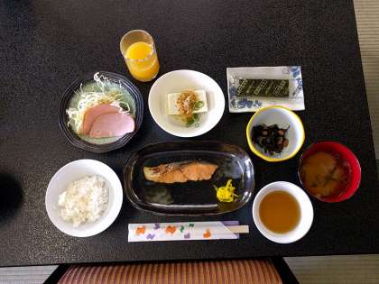 今日の朝食です!会場にはクマのプーさんのぬいぐるみがたくさんありました。