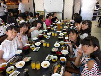 朝食の続きです。朝食の前に旅館の方にみんなでお礼を言いました!