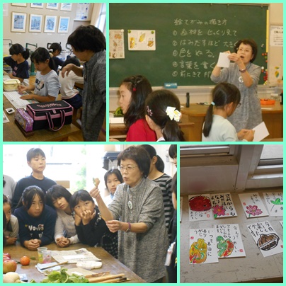 耳の不自由な古木さんと会話するためのホワイトボードづくりや古木さんの得意な絵手紙づくりに挑戦しました。絵手紙づくりでは、もみじやみかんなどを楽しみながら描いていました。感想をホワイトボードに書いて古木さんと会話することもできました。