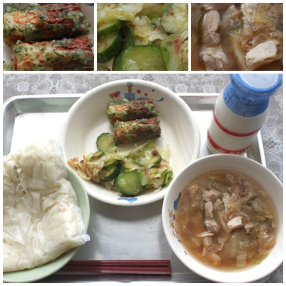 きしめんは、名古屋の郷土料理の中でも最も古くからあるといわれています。一番の特徴は平たい形で、厚さ1mm、幅7〜8mmが一般的だそうです。(南部学校給食センター発行「10月分献立表」より)