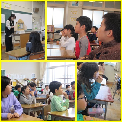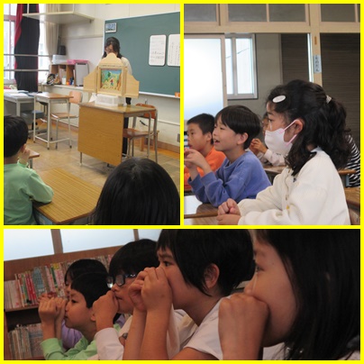 2年1組では、昨日、司書の小島さんによる読み聞かせがありました。昔話の紙芝居を読んでいただき、みんなお話の世界に入りこんでいました。読書週間中に、いろいろなジャンルの本に挑戦してみてください。