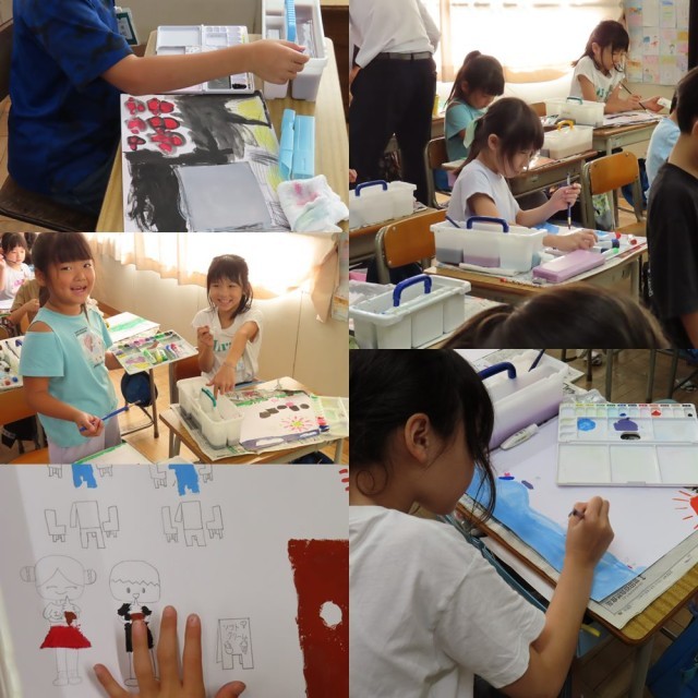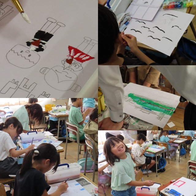 夏休みの思い出を絵に描いている布北っ子が多くいました。