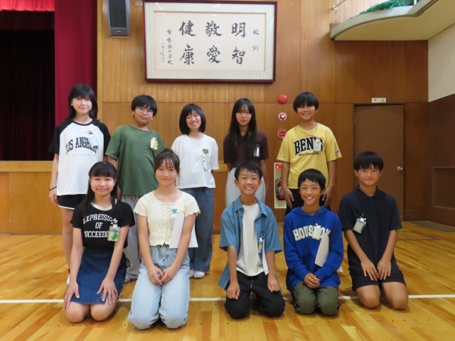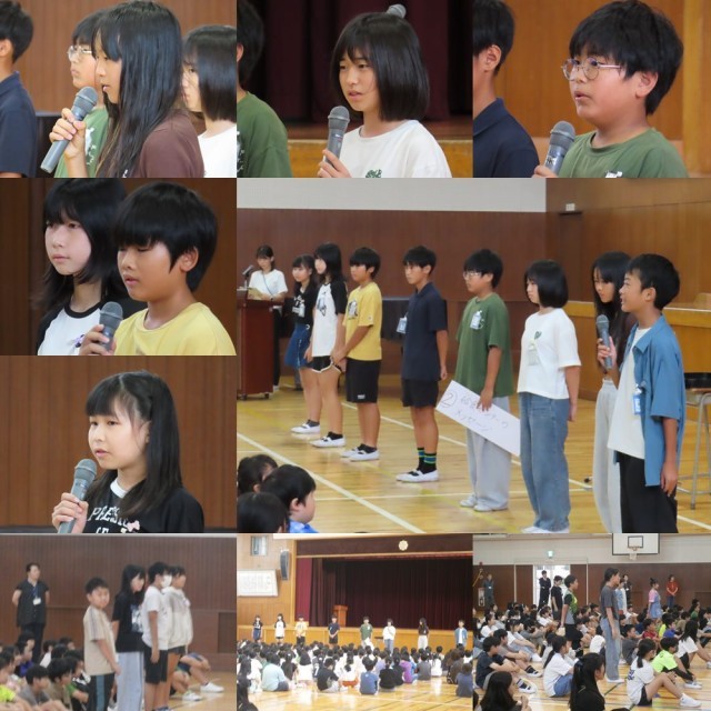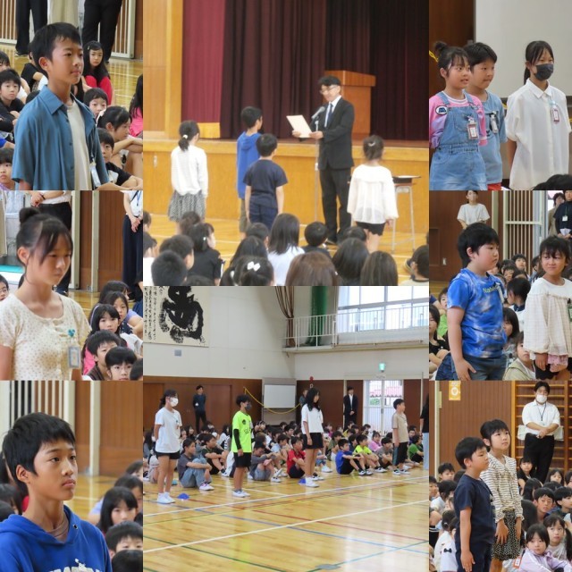 体育館で全校が集まり、委員会の委員長・議員・学級委員を任命しました。