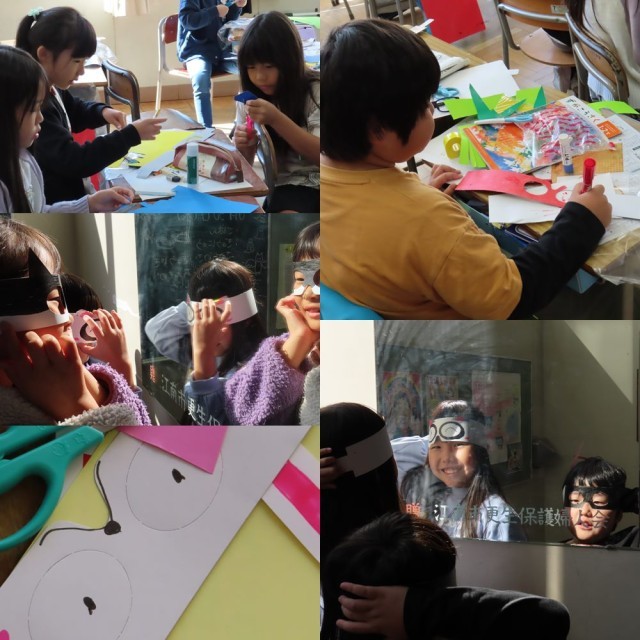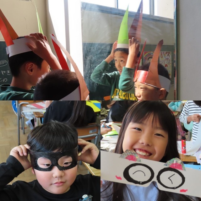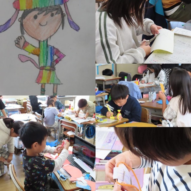 図工で「わっかでへんしん」という授業を行っていました。
