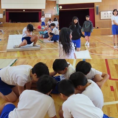 体育で「開脚前転」の練習を行っていました。
