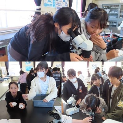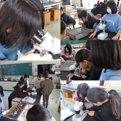 理科で、顕微鏡を使って「火山灰」を観察していました。
