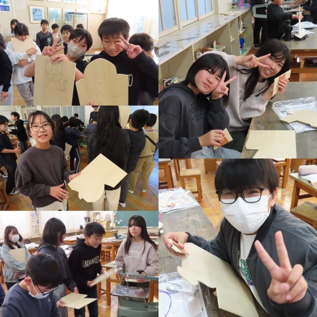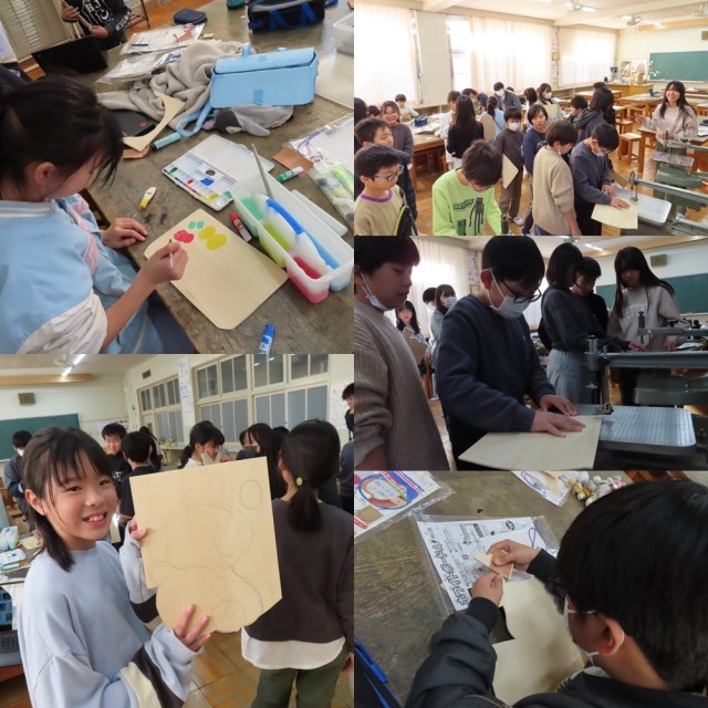 5年生は図工で「切り分けた形から何つくる?」という授業を行っていました。