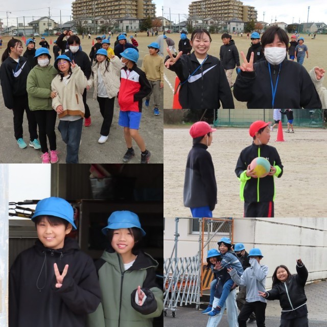 大きな地震→さらに大きな揺れ→理科室より出火という想定で、教室から運動場へ避難をしました。