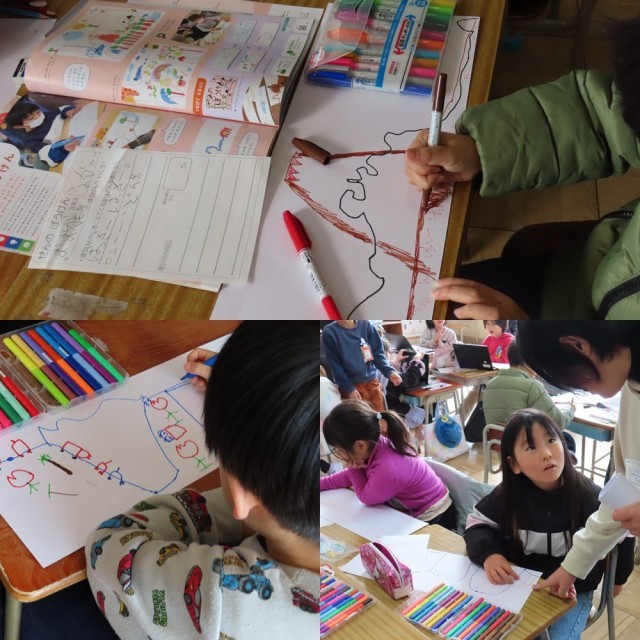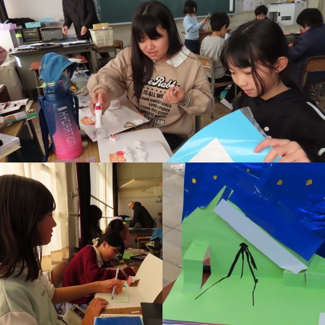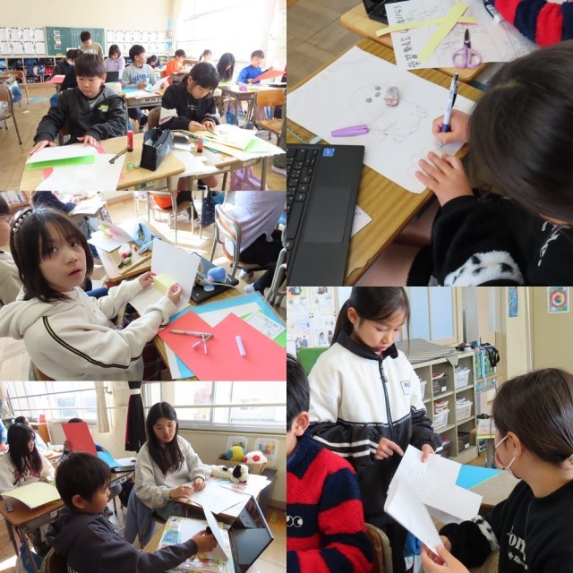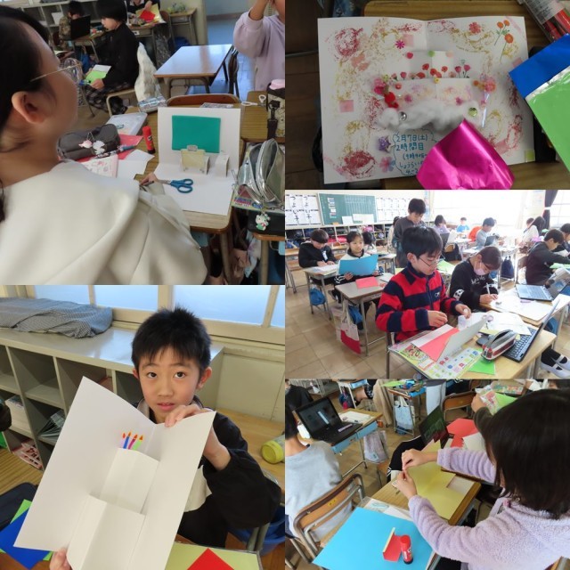 図工で、「幸せを運ぶカード」づくりを行っていました。
