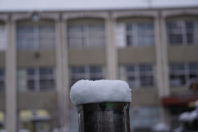 雪玉を手ににぎりしめつつ、笑顔で登校です。