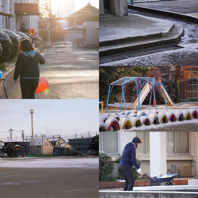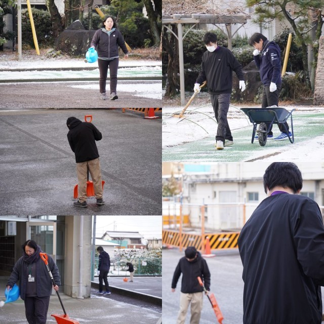 今朝、早くから多くの先生方が、グリーンロードや運動場へと続く外階段、脱離前など、融雪剤をまいたり雪かきをしたりしてくださいました。